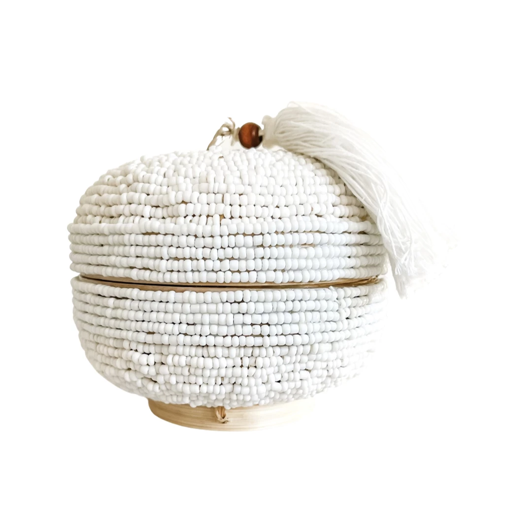 Our bamboo beaded boxes are intricately hand-beaded with thousands of tiny crisp beads by our very own talented artisans in Indonesia. Each one, carefully designed with beautiful details and hand-made with love.