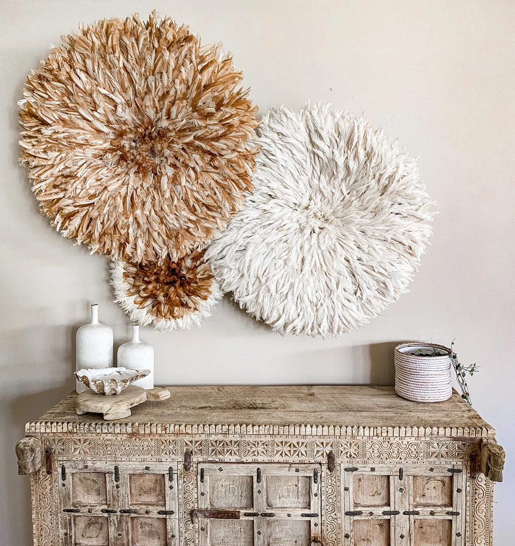 Juju hats are textured pieces of art work and they are the perfect way to dress up a blank wall given their impressive visual effect. Juju hats have gained popularity with interior designers, and are guaranteed to make a statement in your home.Â