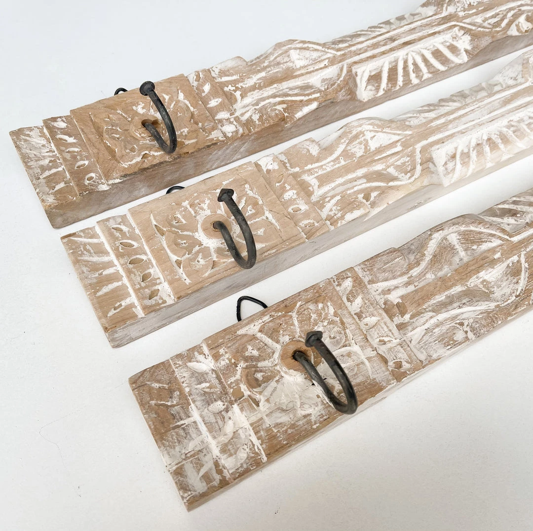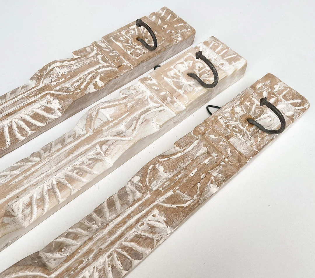 These Indian wooden wall hooks are made from teak wood and are all hand carved making each one unique.Â