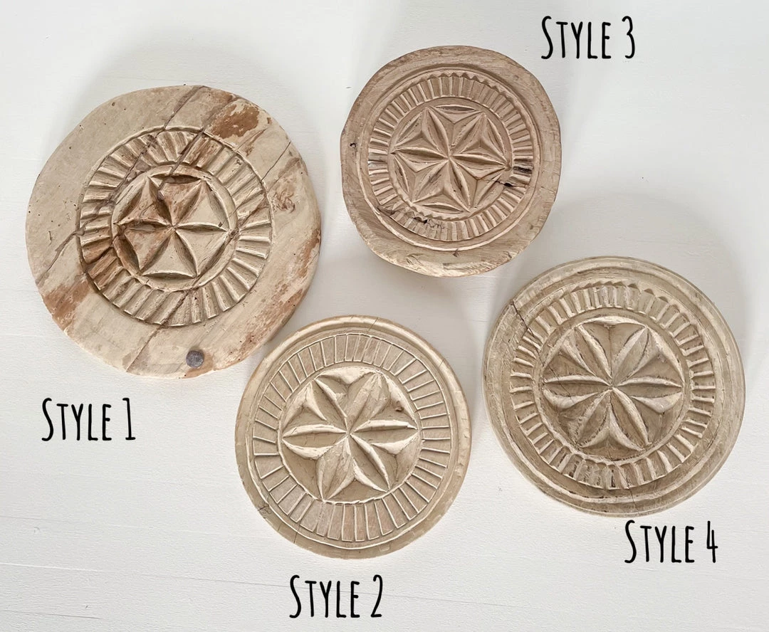 These old Indian carved Chapati plates are all individually unique, they have a rustic earthiness to them and are a gorgeous antique piece. They look stunning as a display board for interior styling or even displayed bare. Please note, no two are the same.