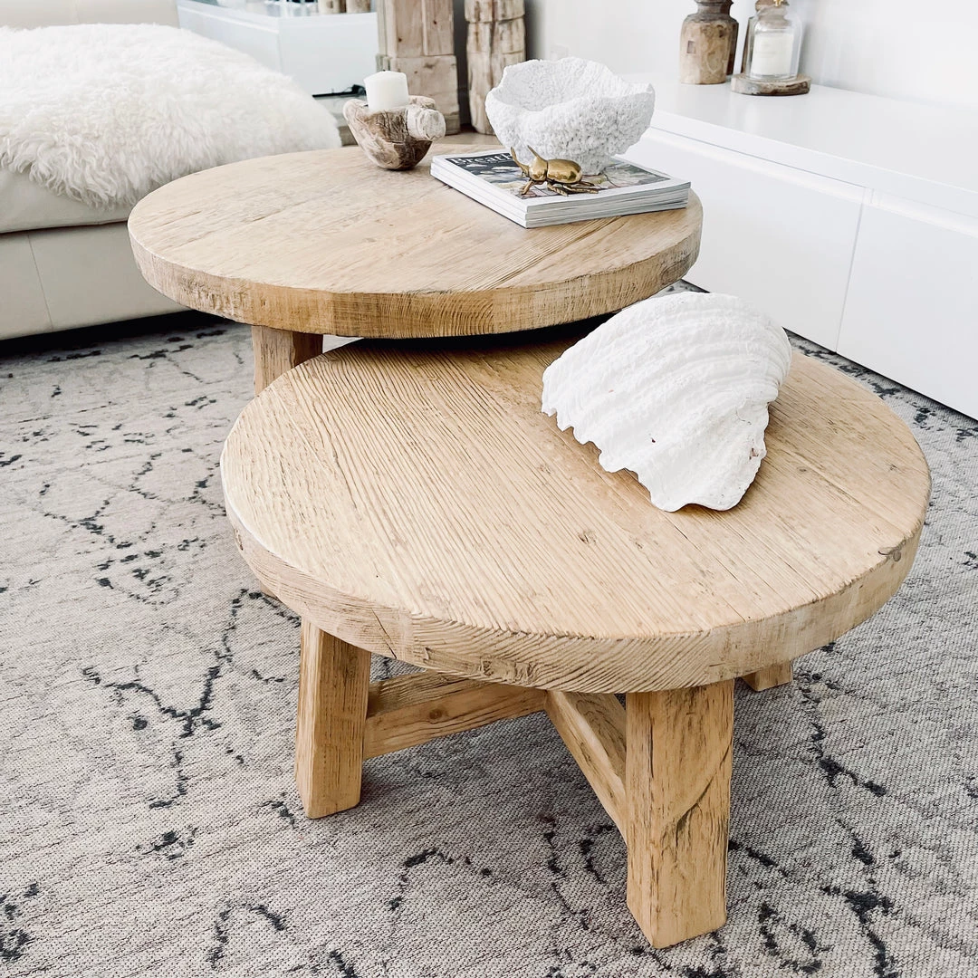 The Lunar Elm Coffee Table is made from rustic elm wood. These tables are designed to be a duo or cluster tables, sitting snug together.