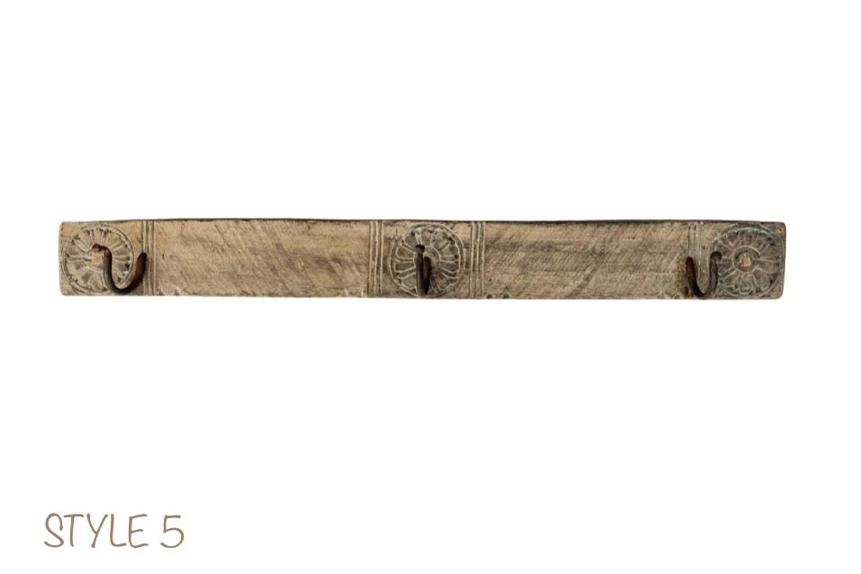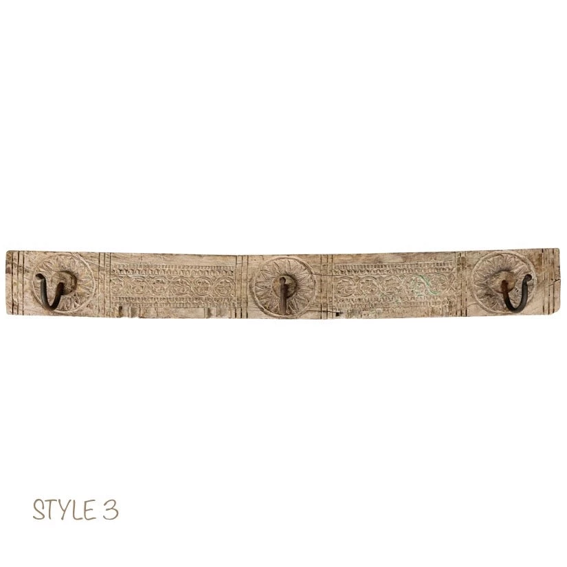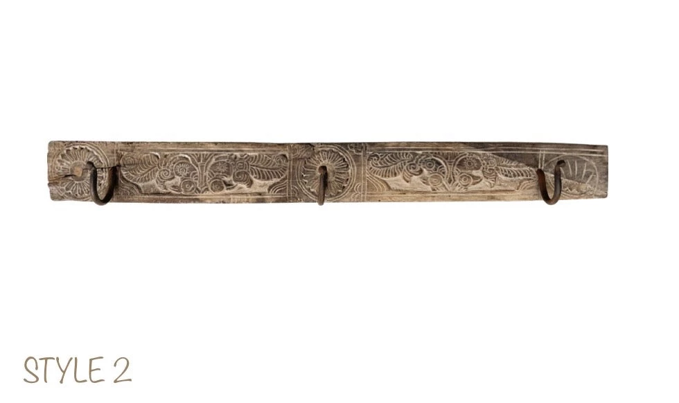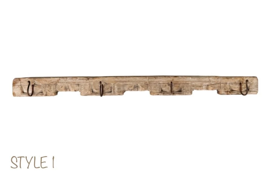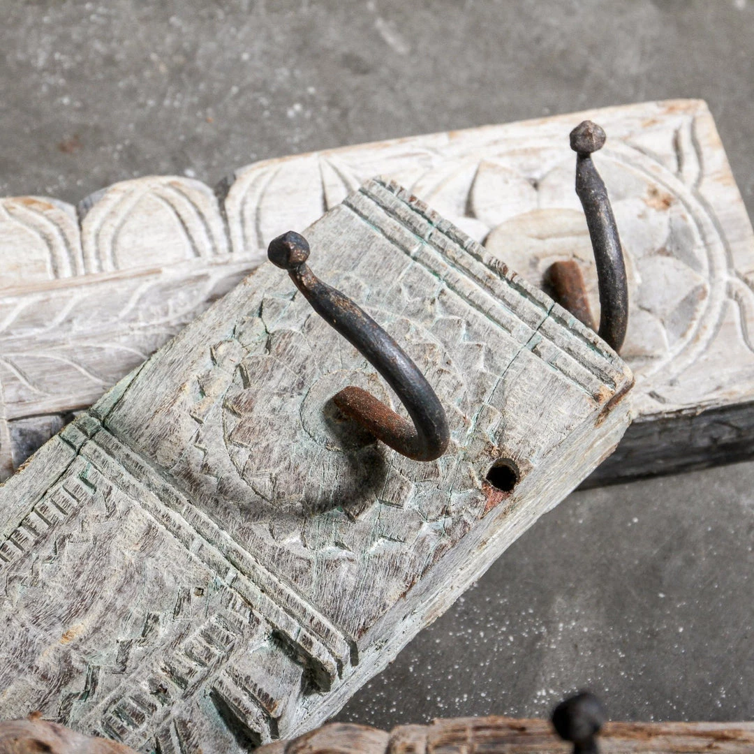 Made of teak posts salvaged from a ruin in the heart of Rajasthan, these 60-year-old panels have been converted into charming sets of hooks. The posts were originally part of an old door frames, making them perfect for both indoor and outdoor decor. At close to a metre in length, they are spacious enough to hold your keys and bags at the end of each day. The solid teak has been washed in a very gentle bleach for a beautiful, raw finish.