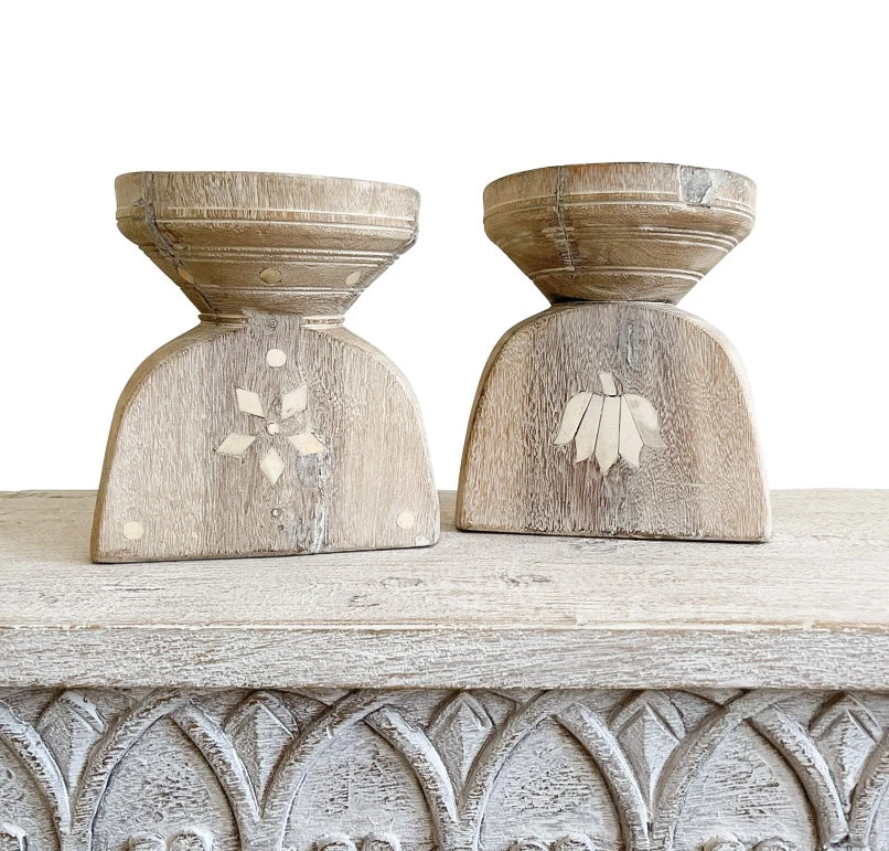 Reimagined to infuse your home with rustic ambience, our Bone Inlay candle stands were traditionally used as a seeder tool in rural Rajasthan. From these vessels, farmers would toss seeds of millet and barley across fields.