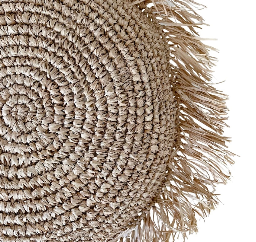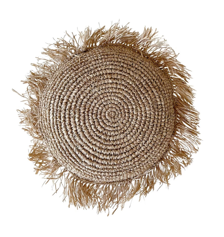 Our round Raffia fringed cushion covers are an excellent way to add natural elements to your home. Full of texture and finished with fringe.