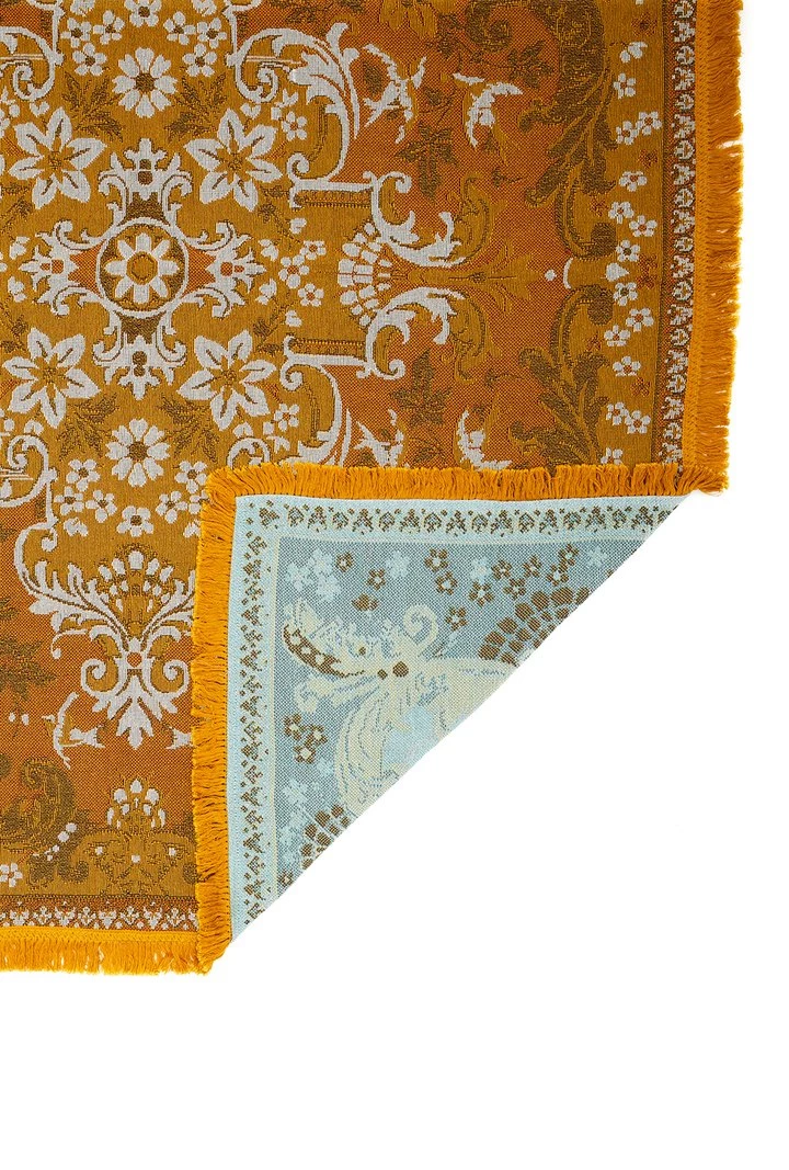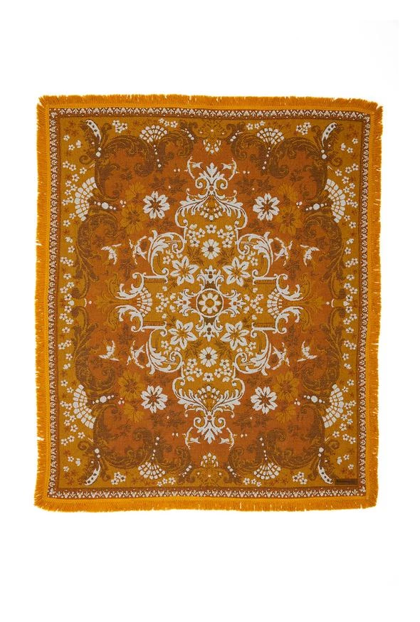 Vintage inspired woven design with mustard fringing.